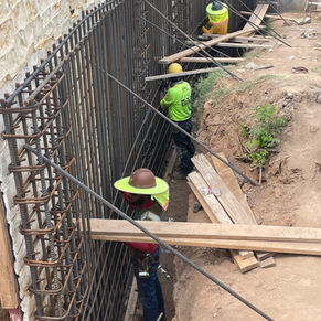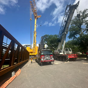 Massive rebar cages and custom wall forms ensure long-term strength and durability, while architectural stone finishes provide a natural look. The project also included heavy crane operations to set the new steel bridge safely and efficiently over the waterway.